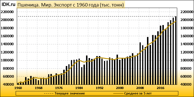 Экспорт: оценивается в 208759 тысяч тонн. За месяц показатель вырос на 1.07 процента.