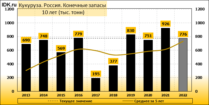 Конечные запасы: составят 776 тысяч тонн. Оценка с последнего отчета не изменилась.