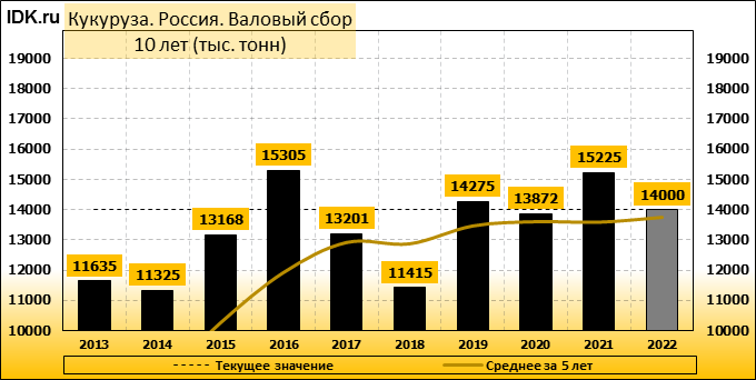 Валовый сбор: оценка пересмотрена в сторону понижения до 14000 тысяч тонн. Показатель упал на -6.67 процента.