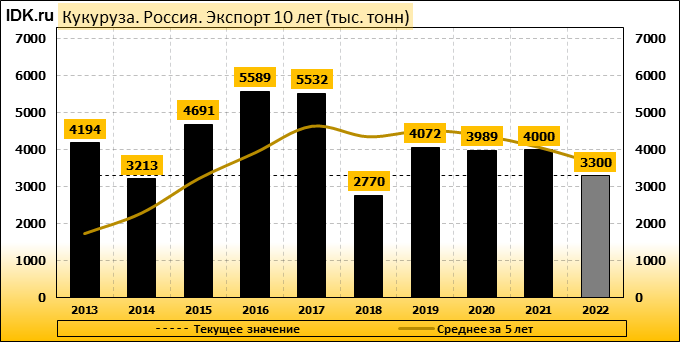 Экспорт: оценивается в 3300 тысяч тонн. За месяц показатель упал на -17.5 процента.