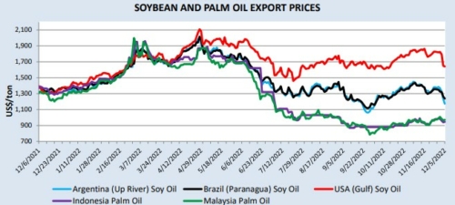 Ноябрь 2022 г. Экспортные цены на соевые бобы и пальмовое масло