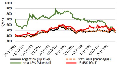 Ноябрь 2022 г. Экспортные цены на соевый шрот