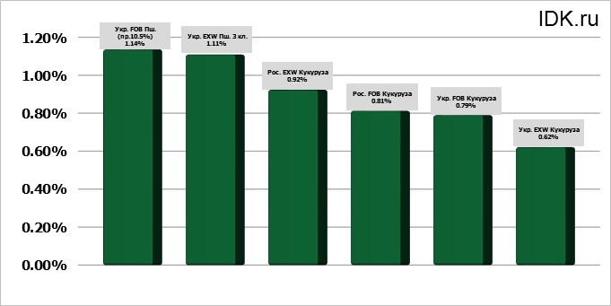 В том числе отгрузки пшеницы в минувшем месяце выросли на 45,6%, до 5,5 млн тонн с 3,7 млн тонн в ноябре прошлого года. За 11 месяцев реализация выросла на 10,4%, до 39,9 млн тонн с 36,1 млн тонн соответственно. Отгрузки кукурузы в ноябре снизились до 970,5 тыс. тонн с 1,2 млн тонн годом ранее. За 11 месяцев этот показатель снизился на 8%, до 5,8 млн тонн с 6,3 млн тонн год назад.