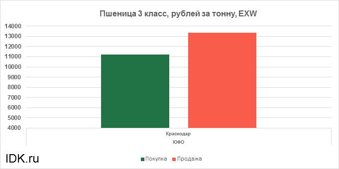 За прошедшую неделю с 19.12.2022 по 23.12.2022 средняя цена на пшеницу 4-го класса, согласно выставленным заявкам трейдеров, выросла по всем округам на 475 рублей. Средняя цена составляет 10471 рубль за тонну.