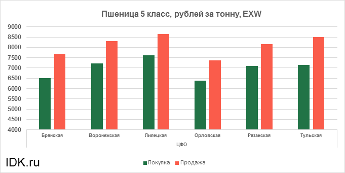 За прошедшую неделю с 19.12.2022 по 23.12.2022 средняя цена на пшеницу 5-го класса, согласно выставленным заявкам трейдеров, упала по всем округам на 188 рублей. Средняя цена составляет 7473 рубля за тонну.