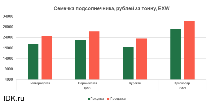 За прошедшую неделю с 19.12.2022 по 23.12.2022 средняя цена семечки подсолнечника, согласно выставленным заявкам трейдеров, выросла по всем округам на 233 рубля. Средняя цена составляет 26450 рублей за тонну.