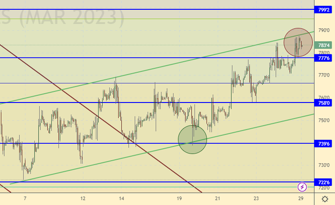 Покупка: нет. Кто в позиции от 1765 и 1780, держите стоп на 1793. Цель: 1890 (2400).