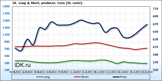 Открытый интерес производителей вырос на 12 тыс. контрактов. Объем контрактов, направленных на хеджирование, составляет 1 008 790 штук. Деньги производителей в течение прошлой недели приходили на рынок поддерживая тенденцию.