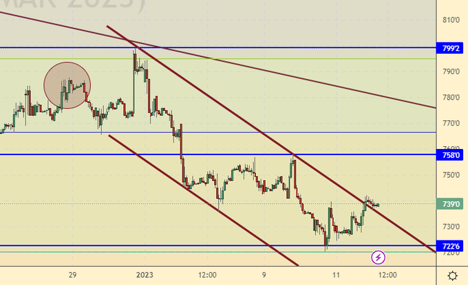 Продажа: нет. Кто в позиции от 750.0, перенесите стоп на 755.0. Цель: 650.0.