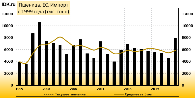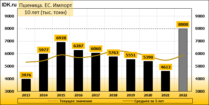 Импорт: составит 8000 тысяч тонн. Значение по прошествии месяца поднялось на 14.29 процента.