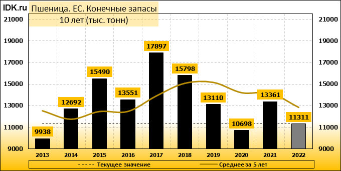 Конечные запасы: составят 11311 тысяч тонн. Оценка с последнего отчета подросла на 8.64 процента.