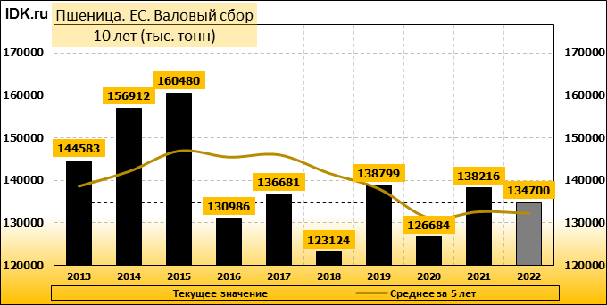 Валовый сбор: оценка пересмотрена в сторону повышения до 134700 тысяч тонн. Показатель вырос на 0.3 процента.