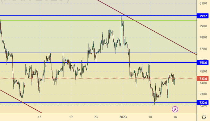 Рынок достаточно спокойно отреагировал на выход отчета USDA. Мы не увидели сильного роста цен. Стоит отметить, что поддержка на 720.0 пока держится. Если котировки пройдут ниже неё, то мы быстро окажемся на 650.0.