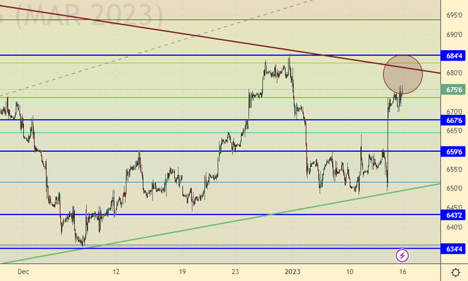 Текущие уровни крайне привлекательны для входа в шорт. Поэтому, будем рекомендовать продажи. Подъем рынка выше 690.0 спутает нам все карты.
