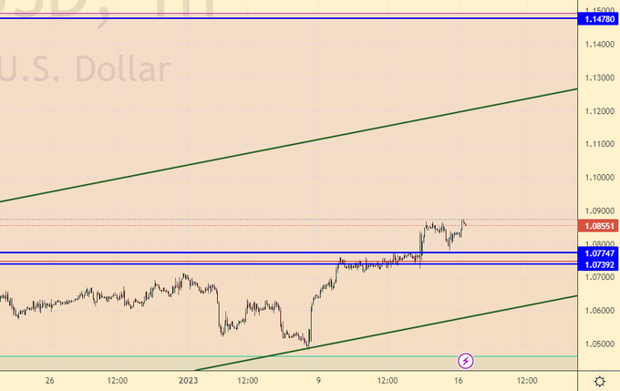 Продажа: нет. Кто в позиции от 1.0800, держите стоп на 1.0900. Цель: 1.0000.