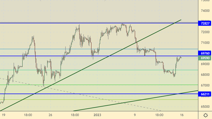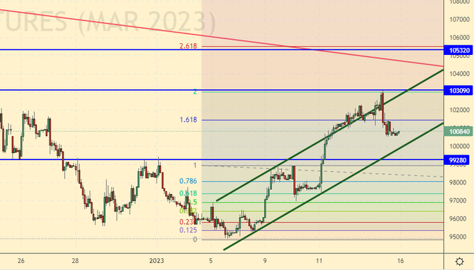 Нельзя отрицать вероятности хода вверх к 105000. Однако, более сильное движение вверх вряд ли состоится, так как фундаментальных причин для роста рынка акций сейчас нет. Подъемы будем использовать вверх для входа в шорт.