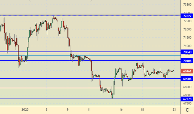 Продажа: нет. Кто в позиции от 69500 держите стоп на 69620. Цель: 66000.