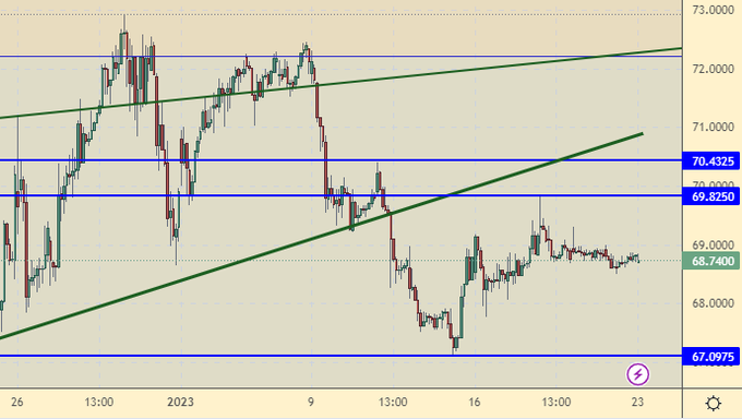 Продажа: нет. Кто в позиции от 69.50 держите стоп на 69.60. Цель: 65.60.