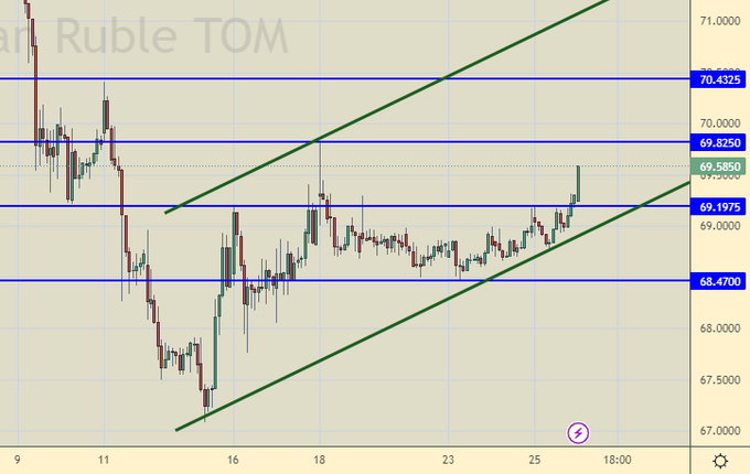 Продажа: нет. Кто в позиции от 69.50 держите стоп на 69.60. Цель: 65.60.