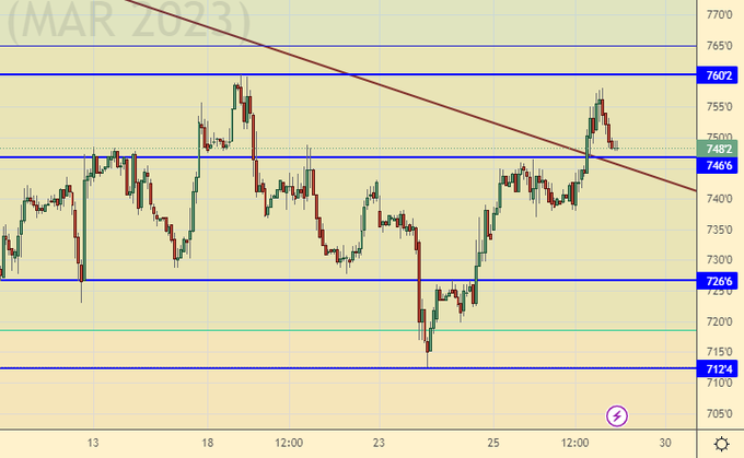 Пшеница преподнесла сюрприз и подорожала. Сегодня мы будем пытаться закрепиться выше 750.0. И за этой попыткой имеет смысл последить. Если она окажется успешной, то наверху откроется отметка 840.0.