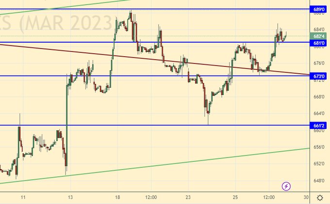 Решили поселиться в диапазоне до выхода решения по ставке ФРС в среду. Если предположить, что повышение ставки на 0.25% сломает быков по евро, то надо продавать сейчас. Дело в том, что если ФРС поднимет ставку, то мы окажемся на отметке 4.75%, что много. В Европе заседание ЕЦБ пройдет 2-го числа и ожидается подъем ставки на 0.5%, что приведет нас к отметке 3%. Разница процентных ставок будет в пользу доллара. А станет ли ЕЦБ и дальше повышать ставку – это большой вопрос.