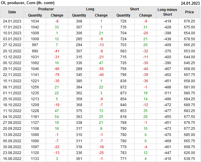 Открытый интерес производителей упал на 8 тыс. контрактов. Объем контрактов, направленных на хеджирование, составляет 1 033 841 штуку. Деньги производителей в течение прошлой недели уходили с рынка не видя привлекательности в текущей ситуации.