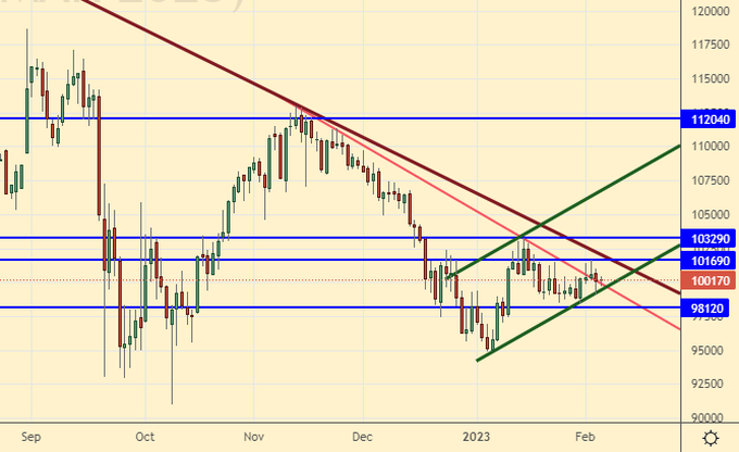Покупка: нет. Кто в позиции от 100000, держите стоп на 97000. Цель: 112000.