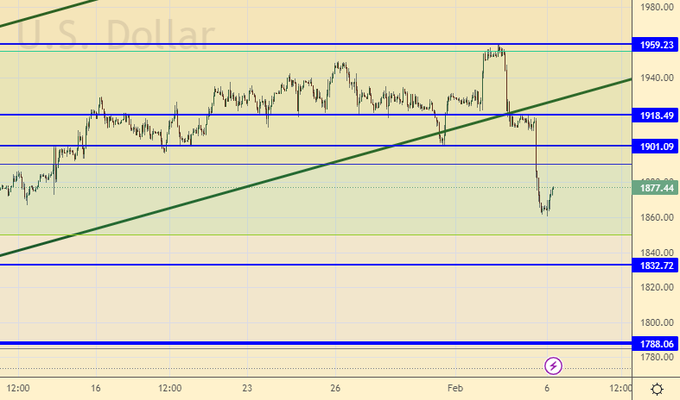 Продажа: нет. Кто в позиции от 1950, перенесите стоп на 1942. Цель: 1790.