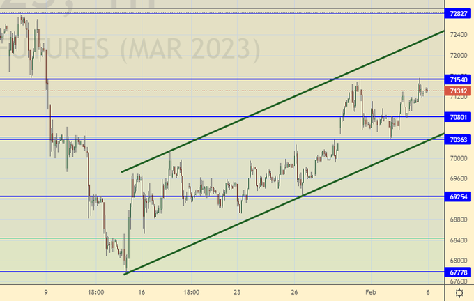 Покупка: нет. Кто в позиции от 71000, перенесите стоп на 70400. Цель: 88000.