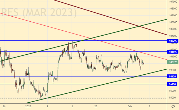 Продажа: нет. Кто в позиции от 101000, перенесите стоп на 101800. Цель: 80000 (50000).