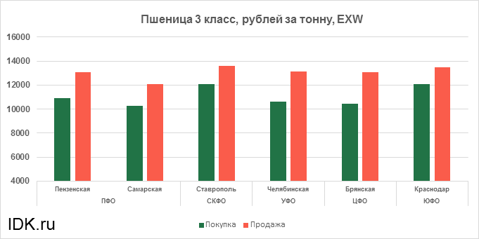 За прошедшую неделю с 30.01.2023 по 03.02.2023 средняя цена на пшеницу 3-го класса, согласно выставленным заявкам трейдеров, выросла по всем округам на 95 рублей. Средняя цена составляет 12187 рублей за тонну.