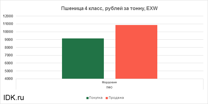 За прошедшую неделю с 30.01.2023 по 03.02.2023 средняя цена на пшеницу 4-го класса, согласно выставленным заявкам трейдеров, выросла по всем округам на 85 рублей. Средняя цена составляет 10005 рублей за тонну.