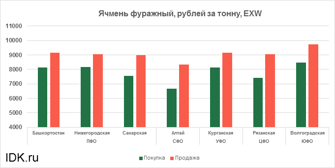 За прошедшую неделю с 30.01.2023 по 03.02.2023 средняя цена на фуражный ячмень, согласно выставленным заявкам трейдеров, упала по всем округам на 431 рубль. Средняя цена составляет 8392 рублей за тонну.
