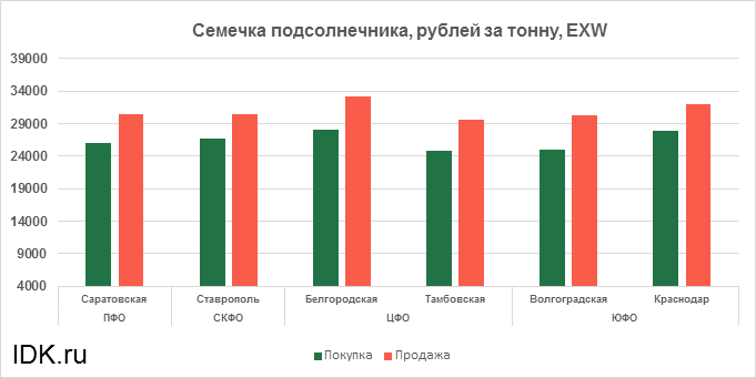За прошедшую неделю с 30.01.2023 по 03.02.2023 средняя цена семечки подсолнечника, согласно выставленным заявкам трейдеров, выросла по всем округам на 2637 рублей. Средняя цена составляет 28746 рублей за тонну.