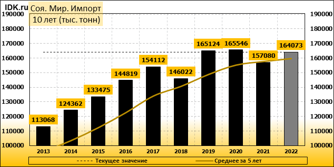 Импорт: составит 164073 тысячи тонн. Значение по прошествии месяца упало на -0.15 процента.