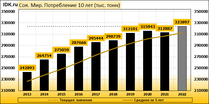 Потребление: показатель пересмотрен в сторону понижения до 323897 тысяч тонн. Значение упало на -1.05 процента.