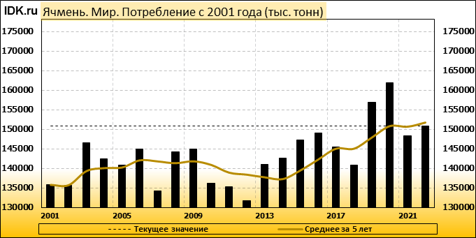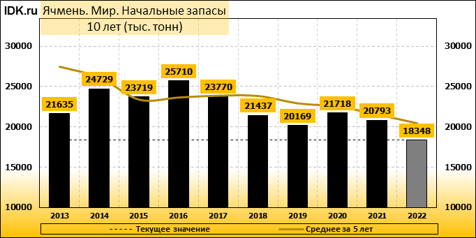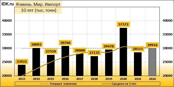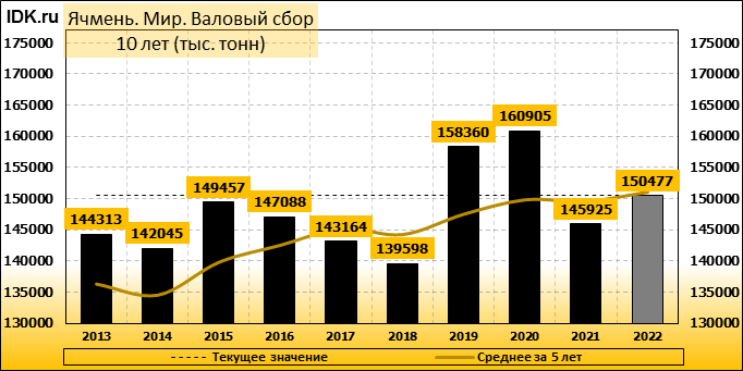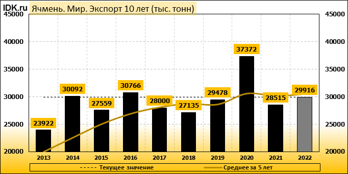 Ожидается, что производство вырастет с 950 000 тонн ячменя в 2021-2022 годах. Площадь урожая ячменя в сезоне 2022–23 сохранится на уровне чуть более 1 миллиона гектаров, что не изменилось по сравнению с двумя предыдущими сезонами.