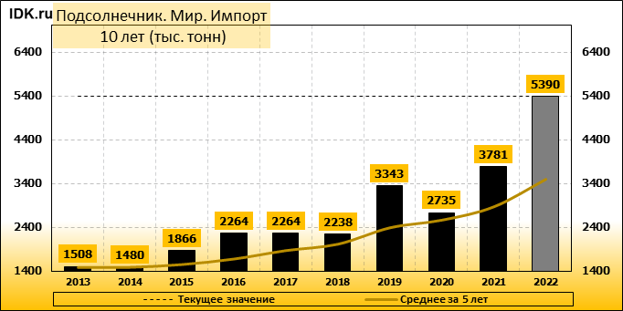 Импорт: составит 5390 тысяч тонн. Значение по прошествии месяца поднялось на 0.96 процента.