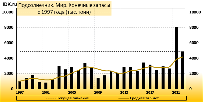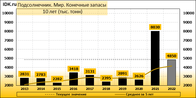 Конечные запасы: составят 4850 тысяч тонн. Оценка с последнего отчета снизилась на -15.34 процента.