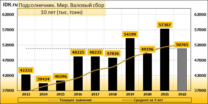 Валовый сбор: оценка пересмотрена в сторону понижения до 50765 тысяч тонн. Показатель упал на -0.6 процента.