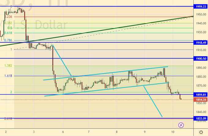Продажа: при подходе к 1900. Стоп: 1942. Цель: 1790. Кто в позиции от 1950, перенесите стоп на 1912. Цель: 1790.