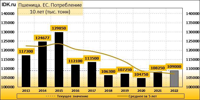 Потребление: показатель пересмотрен в сторону повышения до 109000 тысяч тонн. Значение выросло на 0.69 процента.