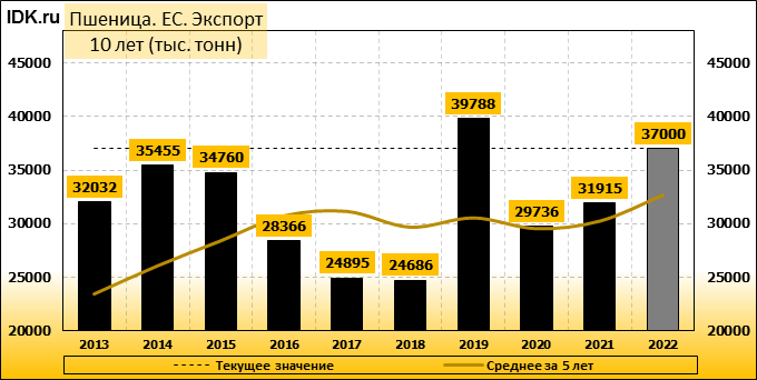 Экспорт: оценивается в 37000 тысяч тонн. За месяц показатель вырос на 1.37 процента.