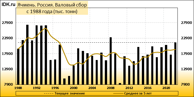 Валовый сбор: оценка пересмотрена в сторону повышения до 21500 тысяч тонн. Показатель вырос на 2.38 процента.