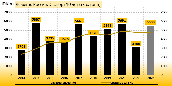 Экспорт: оценивается в 5500 тысяч тонн. За месяц показатель не претерпел изменений.