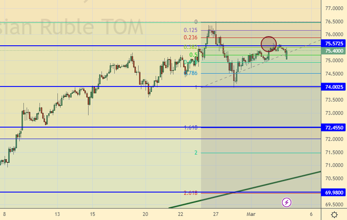 Продажа: сейчас и при подходе к 75.50. Стоп: 76.40. Цель: 70.00. Кто в позиции от 75.50, держите стоп на 76.40. Цель: 70.00.