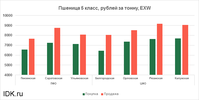 В ЦФО цена упала на 1 рубль, до 8061 рубля за тонну.