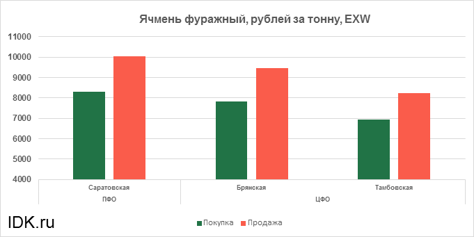 За прошедшую неделю с 27.02.2023 по 03.03.2023 средняя цена на фуражный ячмень, согласно выставленным заявкам трейдеров, упала по всем округам на 82 рубля. Средняя цена составляет 8485 рублей за тонну.