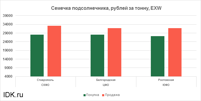 За прошедшую неделю с 27.02.2023 по 03.03.2023 средняя цена семечки подсолнечника, согласно выставленным заявкам трейдеров, выросла по всем округам на 277 рублей. Средняя цена составляет 29990 рублей за тонну.