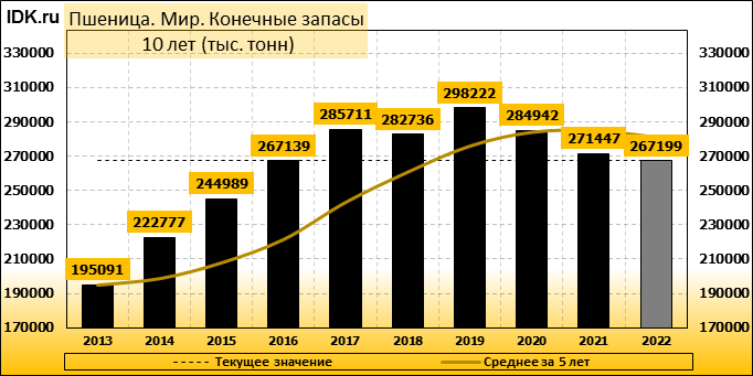 Конечные запасы: составят 267199 тысяч тонн. Оценка с последнего отчета снизилась на -0.79 процента.